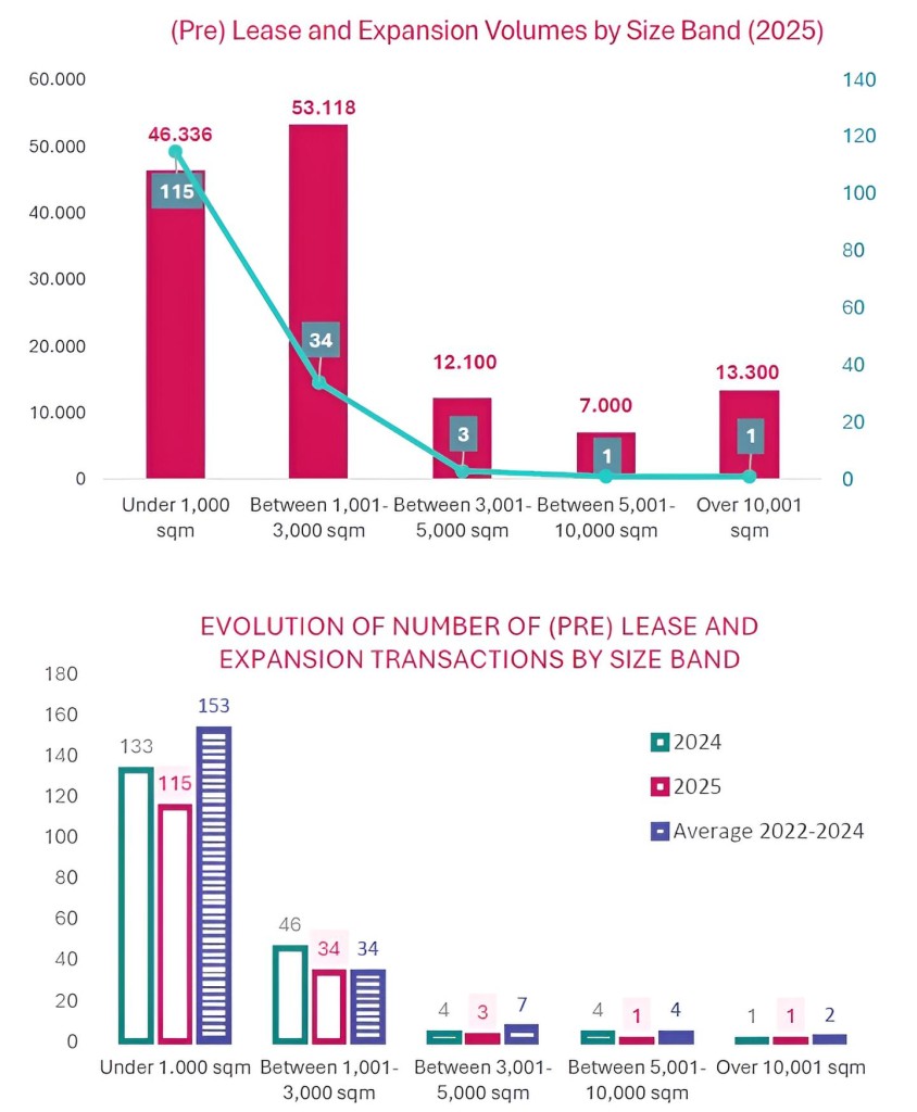 In 2025, out of the 154 transactions completed, only 5 exceeded 3,000 sqm, yet these accounted for nearly 25% of the total transacted volume.