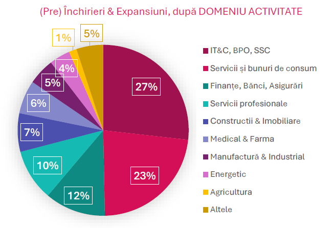 Domeniul IT&C, BPO, și SSC continuă să fie lider după cota de piață în 2025, cu 27% din totalul tranzacțiilor de birouri.