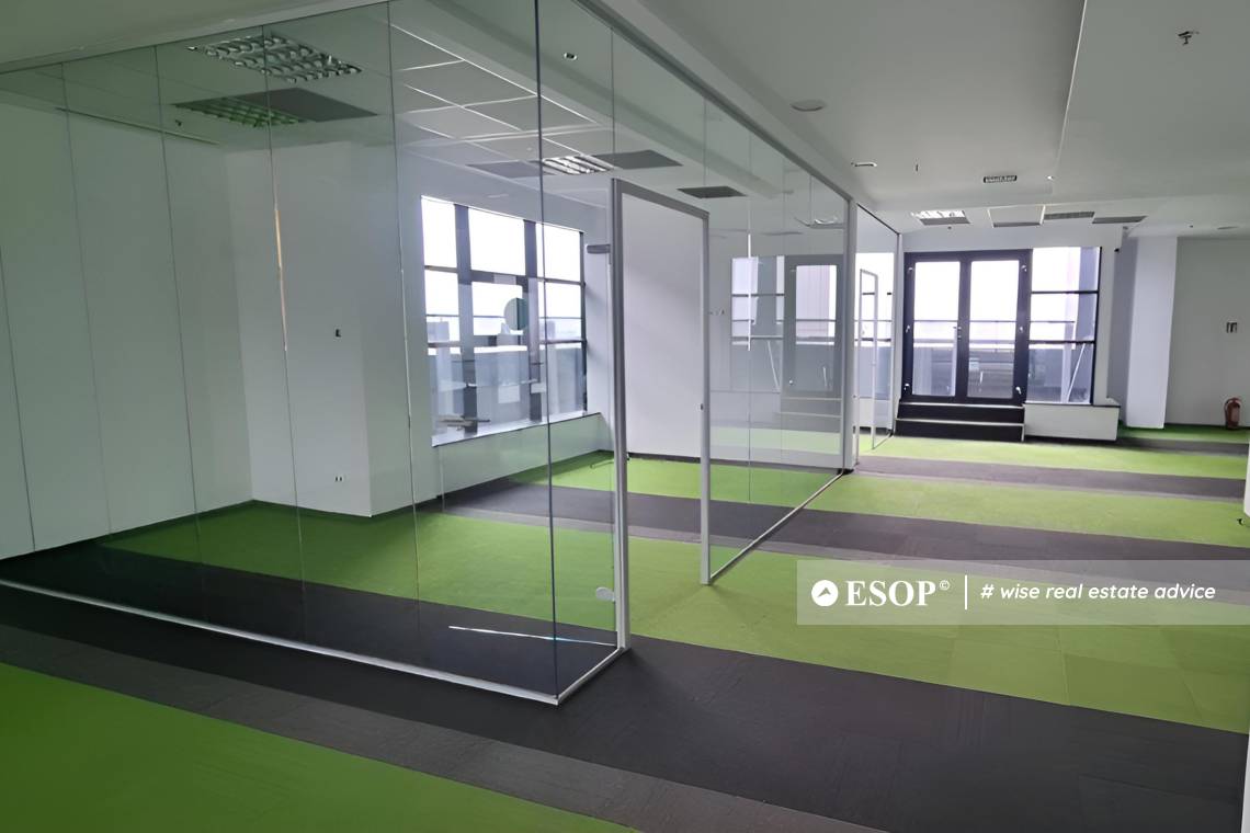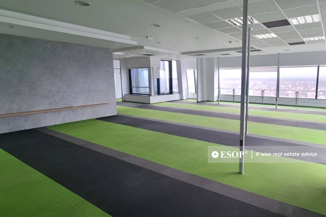 BMS, tavan suspendat cu iluminat incorporat, HVAC cu aport de aer proaspat, sistem alarma si stingere incendiu, CCTV pentru zonele commune, 4 lifturi pe fiecare turn, 2 panoramice si 2 interioare, toalete pe fiecare etaj, inclusiv pentru persoane cu disabilitati, control acces si monitorizare permanenta, camera tehnica, generator de curent de 700KVA care alimenteaza prizele rosii de pe colonete, etc.