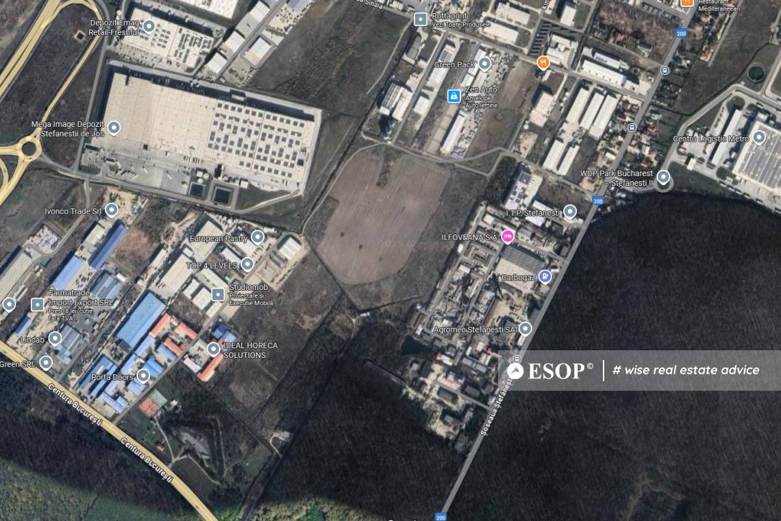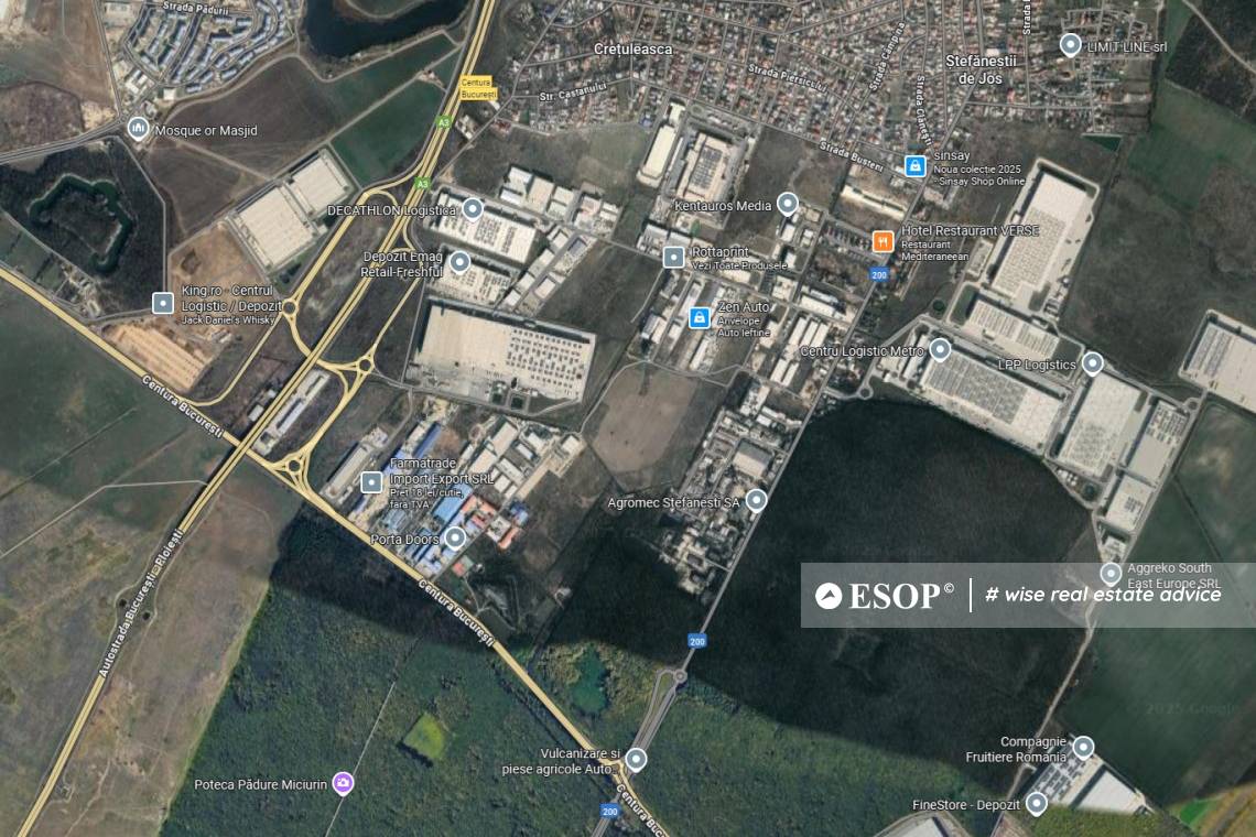 Industrial land for sale, 22,800 sqm, located in Stefanestii de Jos, in a strategic location just a few minutes far from the Bucharest Ring Road, A0 and approximately 5 km from the A3 highway, with quick access to major national and international routes, as well as Henri Coanda Airport. The land is ideal for the construction of industrial halls, logistics warehouses, or production centers and benefits from complete infrastructure and nearby utilities. The area is continuously developing, with investments in roads and services, and is close to commercial and retail points, facilitating both logistics operations and supply. Excellent connectivity to Bucharest and the economic centers of Ilfov makes this land an ideal option for long-term industrial investments and developments.