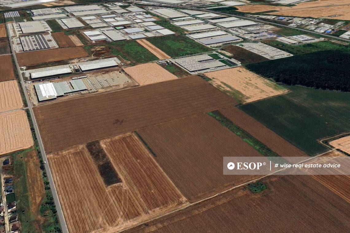 Industrial land of 64,900 sqm for sale, located in Dragomiresti-Ilfov, with a frontage of 316 m, situated in a rapidly developing area, in the immediate vicinity of the main roads in western Bucharest, with easy access for commercial traffic and heavy vehicles. The land is suitable for large-scale logistics, industrial, or commercial developments, such as warehouses, distribution centers, or mixed-use projects, and is located directly next to the industrial and logistics parks of Dragomire?ti. This industrial hub hosts numerous modern warehouses, production units, and logistics spaces, with strong demand for large plots in premium locations in the western metropolitan area of Bucharest. POT 40%, CUT 2, maximum building height P+4.