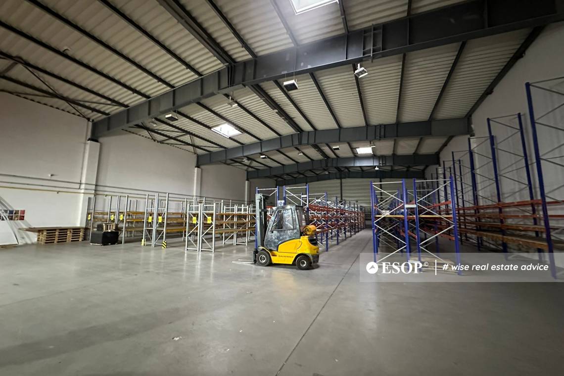 Warehouse space ideal for logistics activities, distribution, or goods storage. The warehouse benefits from a total height of 8 m and a clear height of 6 m, allowing for efficient space organization and vertical storage. TIR (truck) access is easy, and the drive-in door ensures fast and convenient loading and unloading.