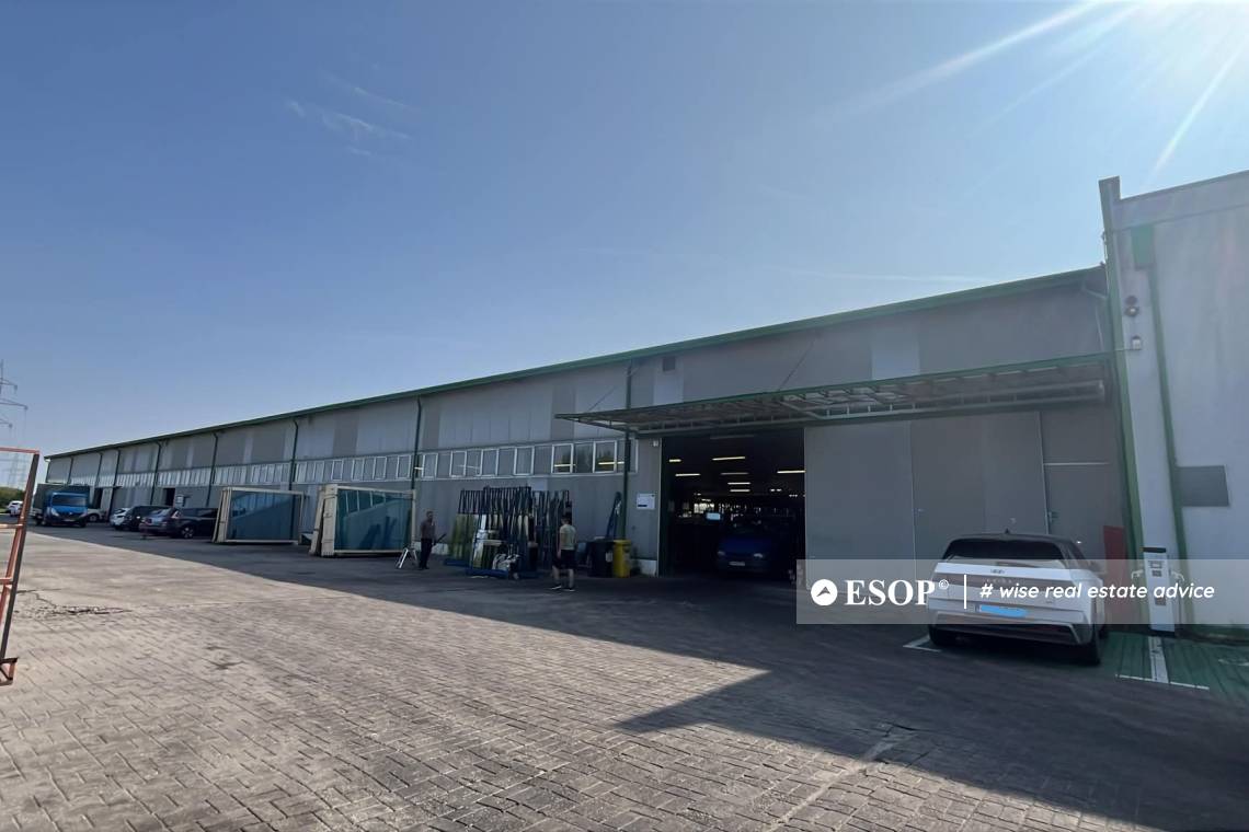 The industrial space has a total area of approximately 1,300 sqm and is located in the Ghiroda area, suitable for storage activities. The hall has a height of approximately 7 meters, allowing for various types of logistical operations. Vehicle access is provided through a gate measuring 3 x 3 meters, while a separate pedestrian door is available for personnel. The space also includes an office area of approximately 33 sqm, suitable for administrative activities or operational coordination.