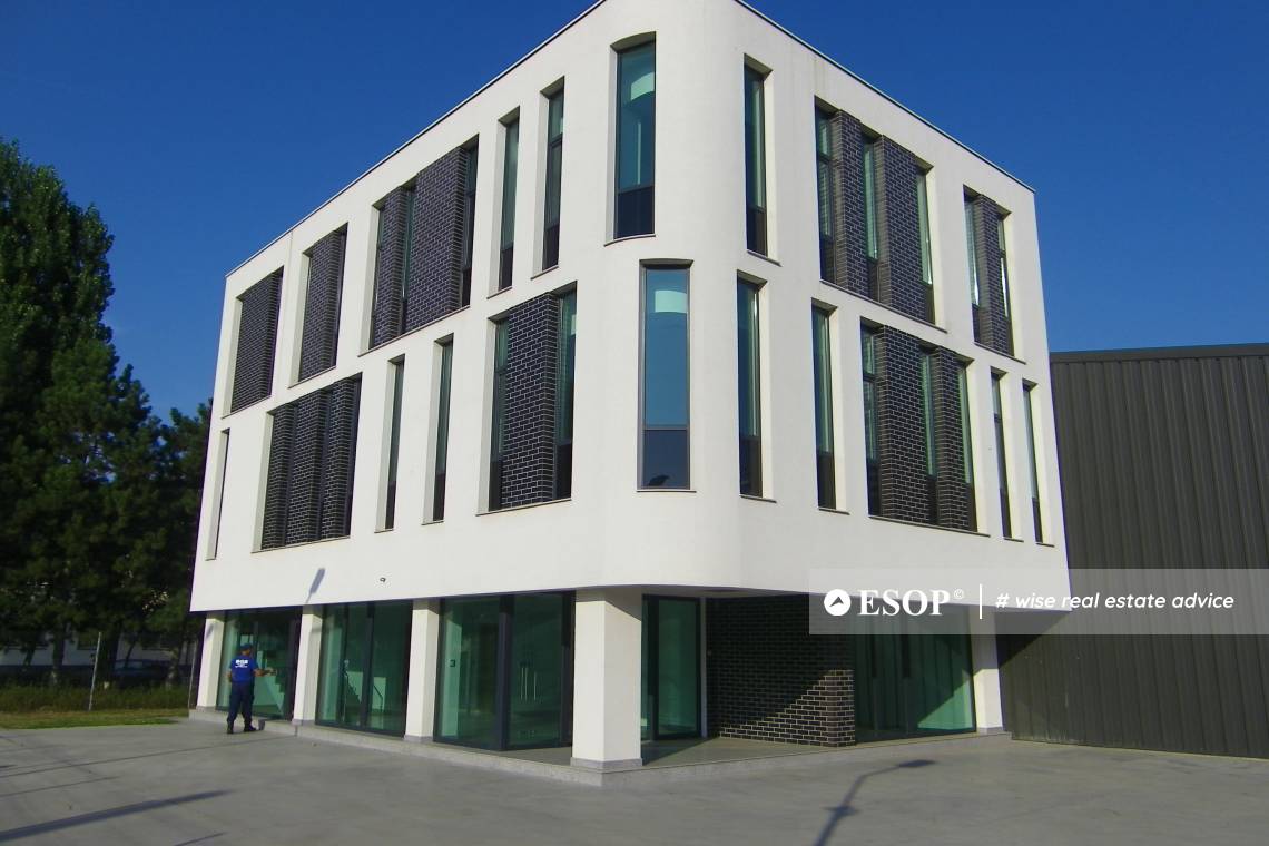 Cladirea de birouri P+2 are 424 mp si este dotata cu lift, ventiloconvectoare in tavanul fals, pardoseala flotanta, mocheta, granit si finisaje premium.