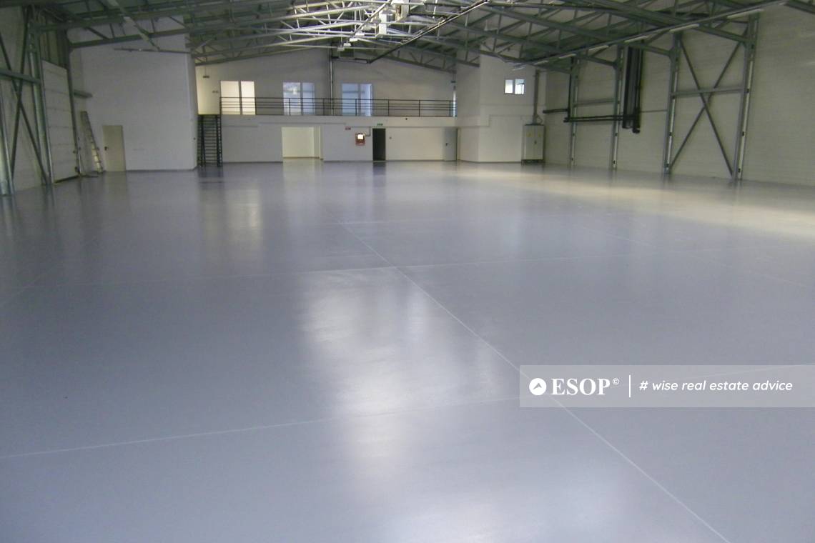 Proprietatea include o hala industriala de 907 mp, cu deschidere libera de 24 ml (fara stalpi pe mijloc), pardoseala epoxidica cu rezistenta de pana la 5 tone/mp si sistem de incalzire-racire cu aeroterme si chiller exterior. Accesul este facil, inclusiv pentru TIR, prin doua usi de acces.
