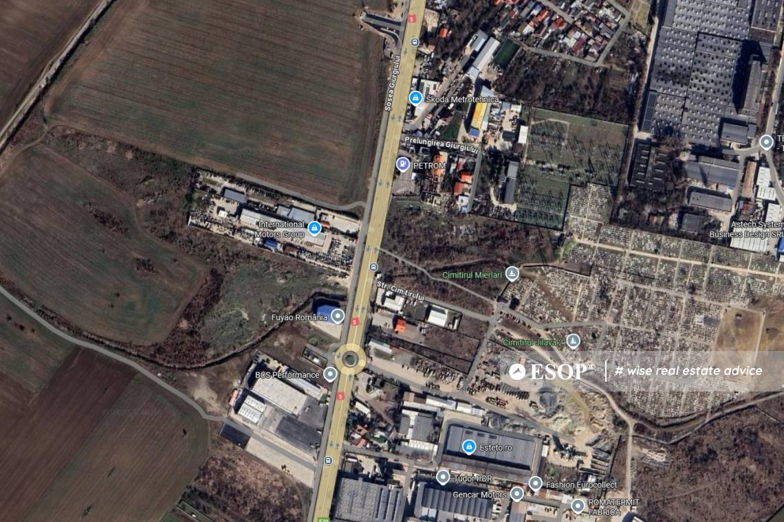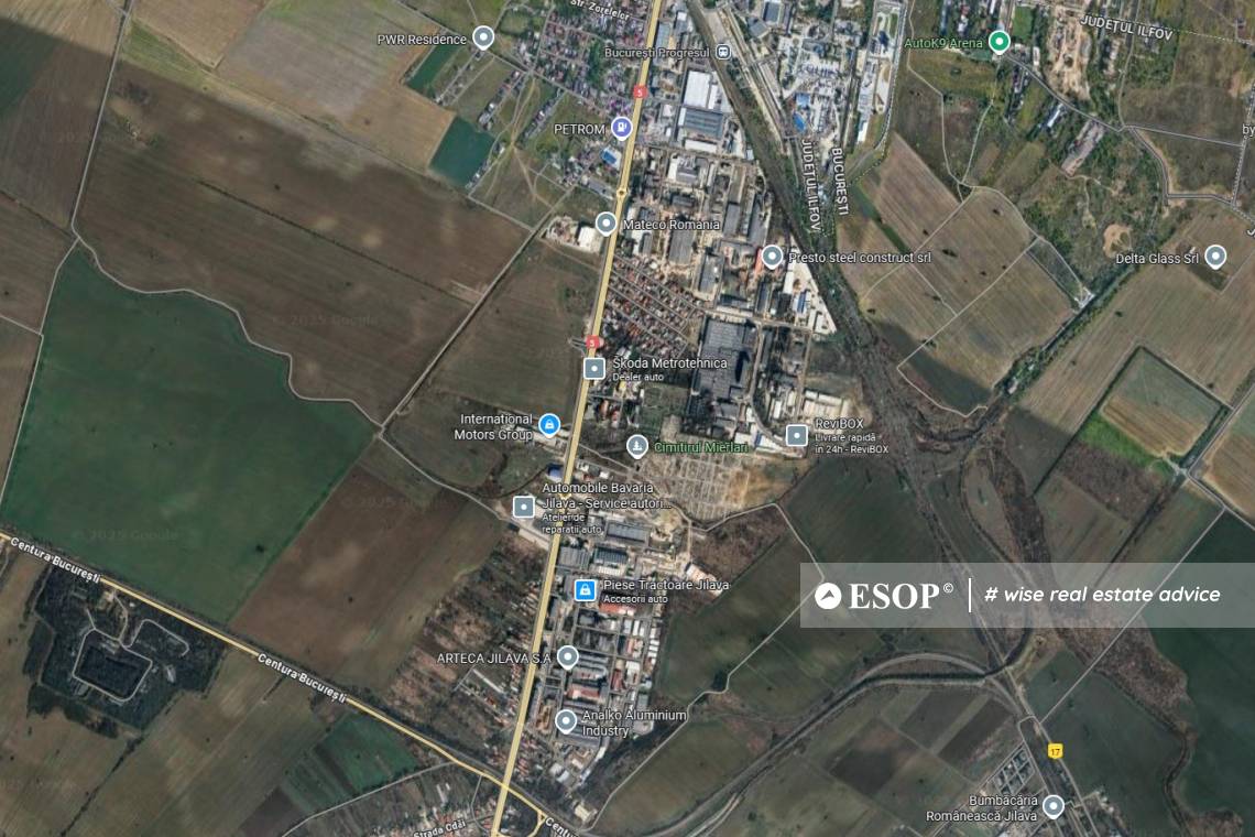 Teren industrial de vanzare in Jilava, Ilfov, cu suprafata de 23.000 mp si dubla deschidere, inclusiv o deschidere generoasa de 123 m la Soseaua Giurgiului, una dintre cele mai circulate artere de acces din zona. Amplasamentul strategic asigura acces facil si rapid la Soseaua de Centura Bucuresti, la doar cateva minute distanta, permitand legaturi directe catre principalele autostrazi si toate zonele capitalei. Coeficienti urbanistici: POT 50% si CUT 1.5, PUG in lucru. Terenul este ideal pentru proiecte industriale, logistice, servicii, depozitare sau constructii speciale, fiind situat intr-o zona in plina dezvoltare, cu numeroase platforme logistice, hale si unitati de productie in imediata apropiere. In proximitate se afla o statie de autobuz (418, 419, 420, 428, 465), care asigura accesul facil pentru angajati cu transportul public. Invecinarea cu Statia Electrica Jilava reprezinta un avantaj major, permitand instalarea de parametri electrici de mare si foarte mare capacitate, in functie de nevoile specifice afacerii. Locatie cu vizibilitate ridicata, access direct la E85.